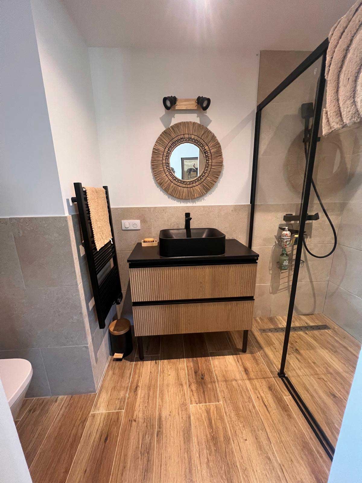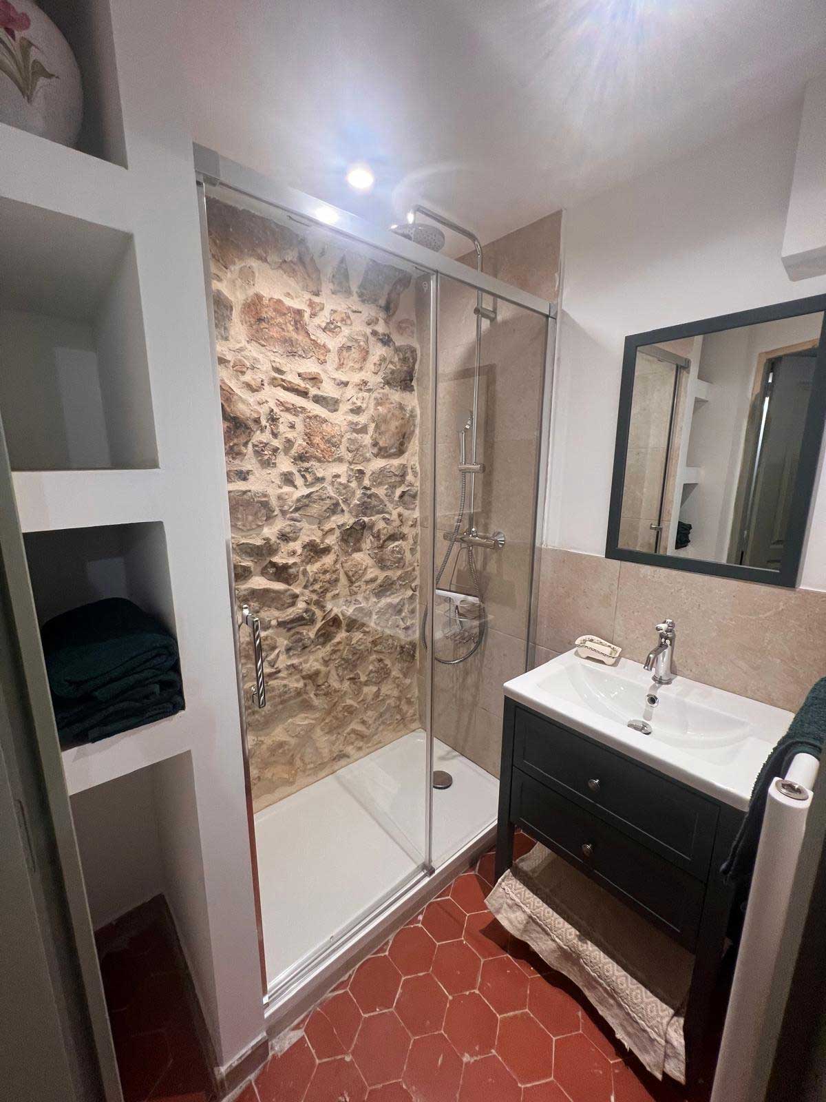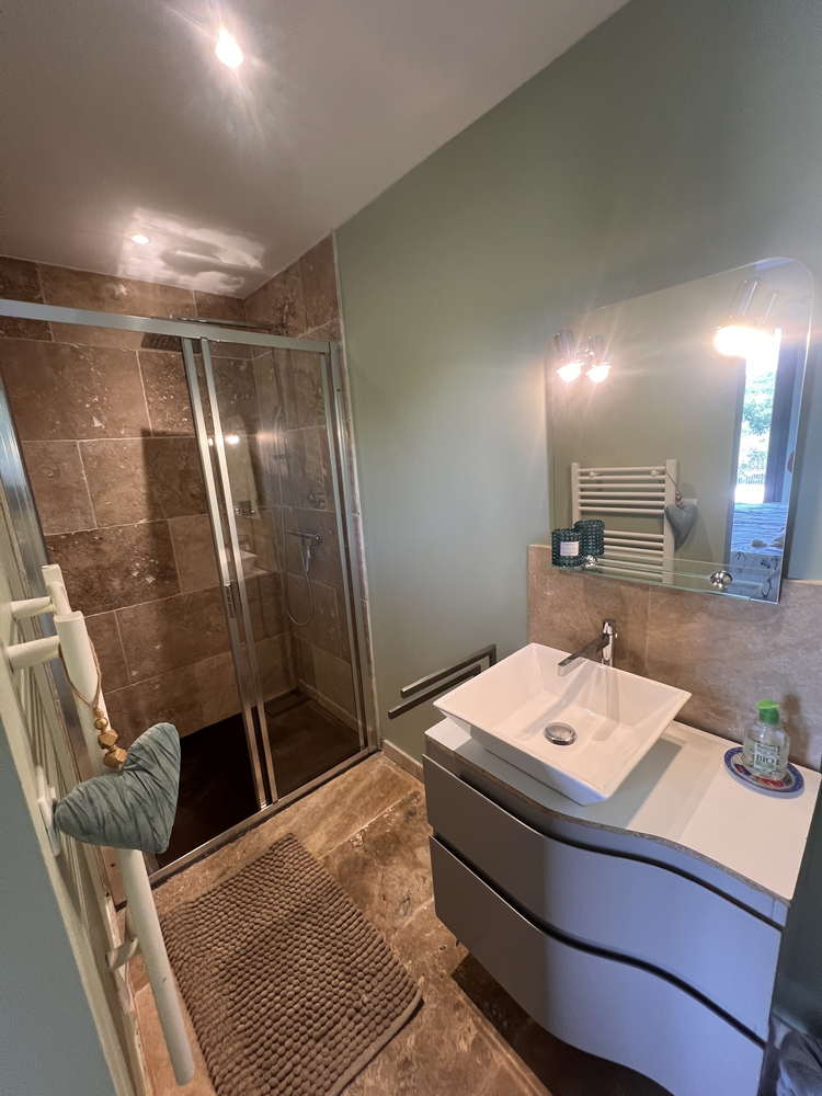 Salle de bain avec douche et WC séparé.